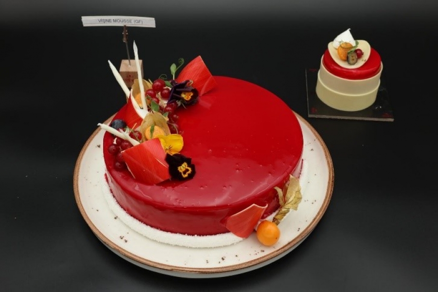 Uygulama: Kek hamuru pişirildikten sonra 2 kat olarak çemberin içerisine alınır; ara katmanlardan bir tanesi MARZIPAN ALMOND %35 - BADEM EZMESİ, diğeri MELLA DOLGU – VİŞNE ile zenginleştirilir. -18°C’de donduktan sonra soslanır ve dekorlanır.